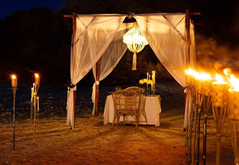 コーラル島のバナナビーチでのロマンティックディナーです。シャロン桟橋からバナナビーチまでは、往復貸切のヨットで移動します。