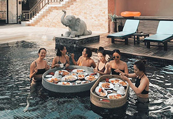 シャロン寺近くにあるヴィラホテルが行っているフローティングランチです。弊社の送迎かシティツアーなどでお出かけください。お食事後にタイガーパーク行きも可能です。フローティングランチの滞在時間はおよそ90分です。