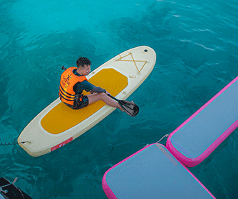 マイトン島沖到着、シュノーケル、SUP、クリアカヌー |