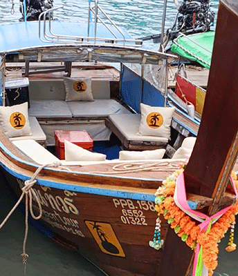 ピピ島にフェリーやスピードボートで訪れ、マヤベイやピレイラグーンなどに行かれたい方はこの貸切ロングテールボートが便利です。 (8~9月はマヤベイは閉鎖されるため、他の場所を延長してツアーは行われます)